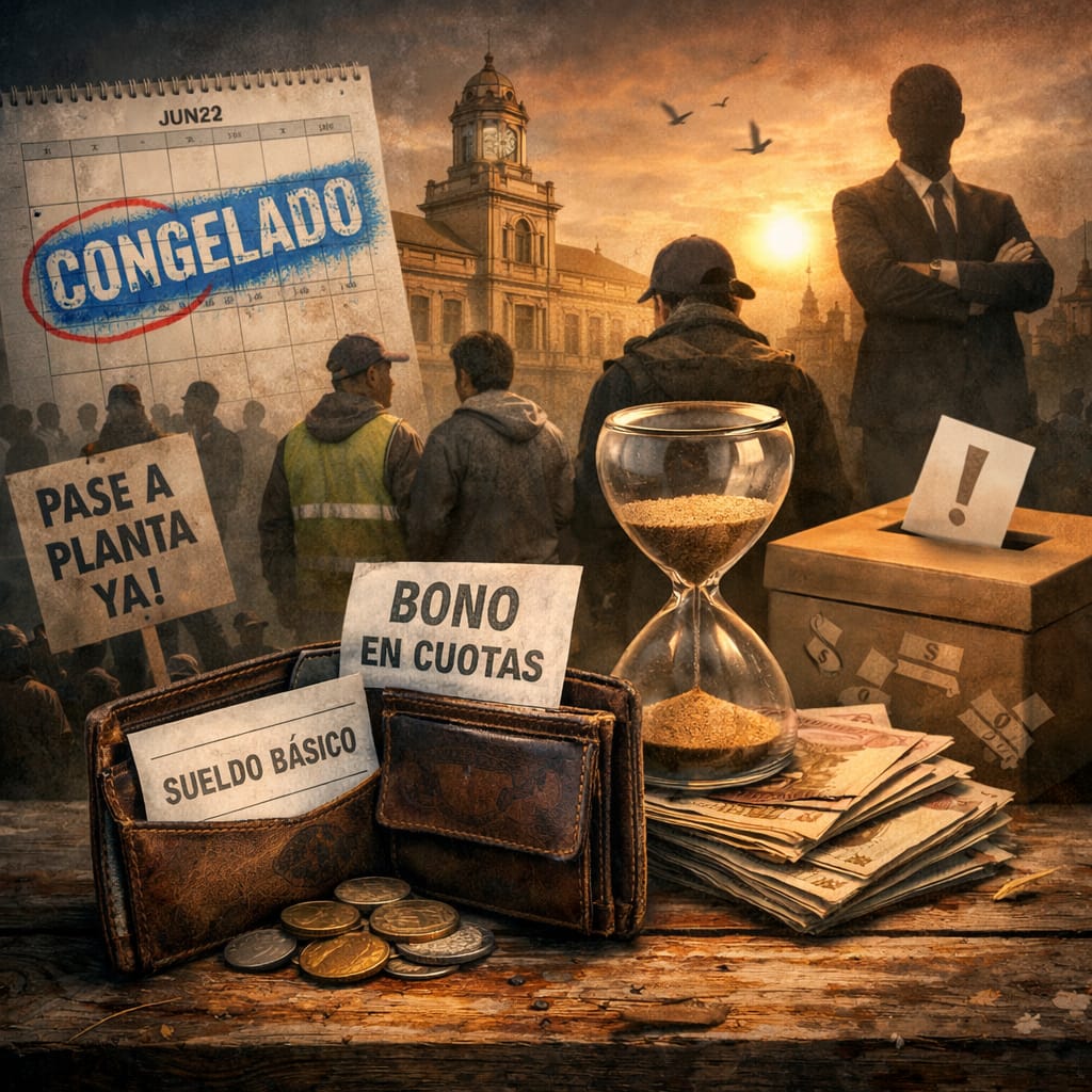 Y atención, porque abajo de la alfombra algo se mueve. El mar de fondo ya no está tan calmo. En los pasillos municipales se escucha un murmullo que crece: **el empleado está cansado**. Cansado del bono en cuotas, del aumento congelado, del ninguneo permanente y del verso reciclado.