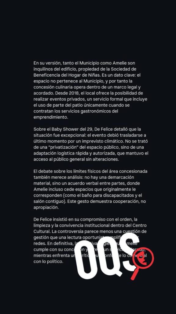 Aclaración para el que no sabe: El Centro Cultural no es del Municipio porque sí. Está cedido en comodato por la Sociedad de Beneficencia Hogar de Niñas desde hace décadas. A partir de allí, el Municipio puede concesionar la cocina y el salón gastronómico, y lo viene haciendo también desde hace tiempo.