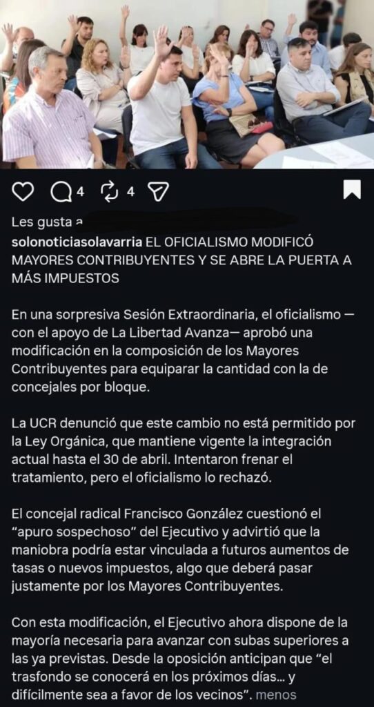 Esta vez fue en la modificación de la composición de Mayores Contribuyentes, una jugadita técnica que, traducida al idioma del vecino, significa una sola cosa: más impuestos. Y no es un hecho aislado. Es la antesala del impuestazo que se viene. El tablero preparado para meter la mano en el bolsillo del vecino con mayoría asegurada y cara de trámite administrativo.