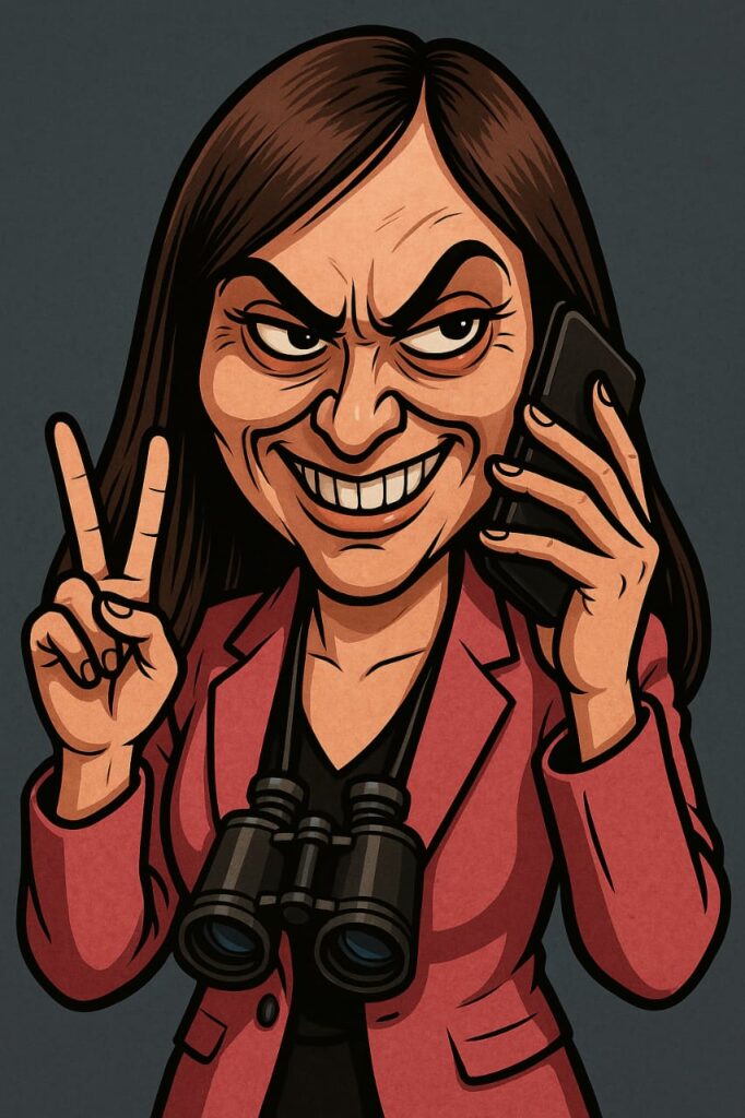 Nuestra dama del veneno político no necesita cicuta ni pastillitas misteriosas. Le alcanza con su celular. Sí, el arma favorita de toda camporista con tiempo libre y cero vocación de servicio. Va oficina por oficina filmando, sacando fotos, todo sin consentimiento, como si fuera parte de su “función pública”: intimidar trabajadores que no son “del palo”. De última, coherente con el proyecto.